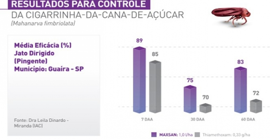 A importância de moléculas inovadoras para o controle da cigarrinha é enaltecida por especialistas na área, que destacam como exemplo o MAXSAN, da IHARA. O produto tem sido exaustivamente trabalhado por pesquisadores e consultorias no sentido de buscar mais informações sobre a eficácia da junção entre seus princípios ativos.