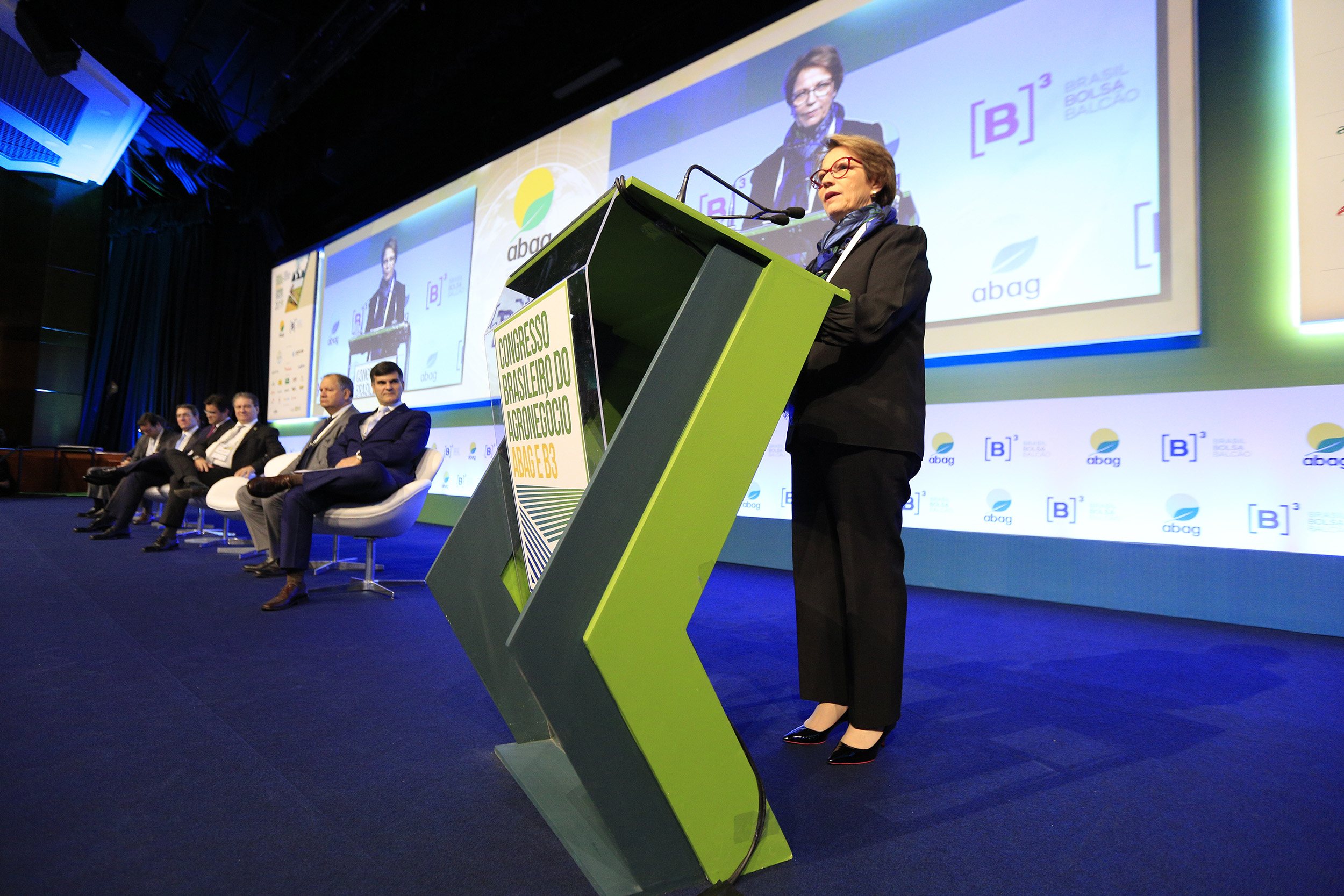 Em relação ao tema, Tereza Cristina afirmou que o fato de “a fila de registros [de defensivos agrícolas] andar mais rápido traz tecnologia e segurança. E não o atraso, como querem colocar a pecha no agronegócio brasileiro. Nossos concorrentes devem estar adorando a situação.” Segundo ela, dos 262 produtos registrados [até o momento do Congresso da ABAG], apenas sete são novos. Os demais seriam genéricos ou equivalentes aos já existentes no mercado.