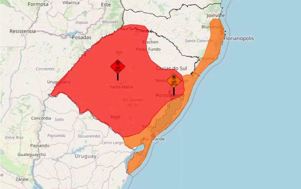 Dois alertas do Instituto Nacional de Meteorologia (Inmet) seguem ativos com validade para esta segunda-feira, 10 de fevereiro. O alerta vermelho de “perigo extremo para a onda de calor” abrange quase na totalidade o Estado do Rio Grande do Sul, exceto a costa leste do Estado que está sob alerta laranja de “perigo”. A costa de Santa Catarina também segue sob atenção, informa o Inmet.