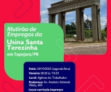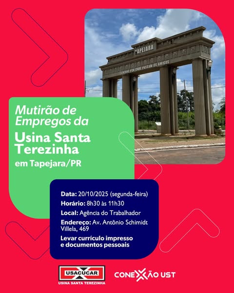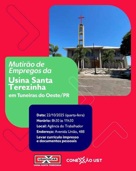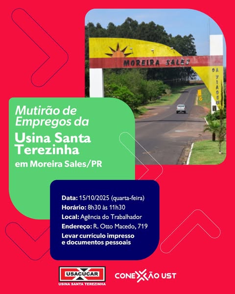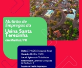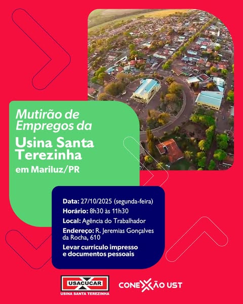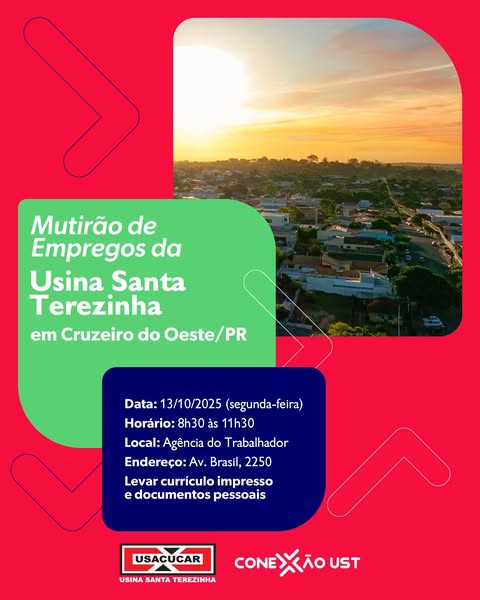 No mês de outubro a equipe de RH da Usina Santa Terezinha estará presente em 5 municípios para receber currículos e fazer entrevistas: