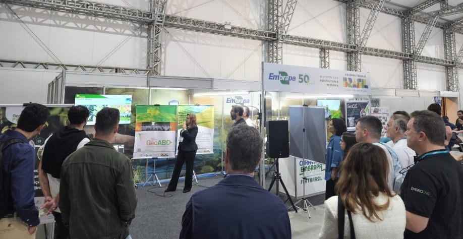 Na tarde da quarta-feira foi a vez da apresentação da tecnologia GeoABC+, projeto desenvolvido pela Embrapa Solos (Embrapa Solos, RJ) que visa à detecção de sistemas de produção, como a integração lavoura-pecuária-floresta (ILPF), e a política de baixa emissão de carbono. O GeoABC+ é um componente do projeto IS_Agro, que está desenvolvendo soluções digitais para criação, estimativa e divulgação de indicadores agro-socioambientais - saiba mais.