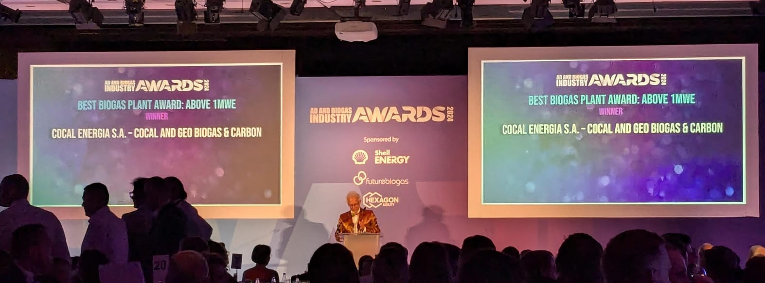 O “The World Biogas Summit 2024” aconteceu na última semana na cidade de Birmingham, na Inglaterra, e abordou os principais cases de produção do gás renovável e sua respectiva importância na descarbonização da matriz energética global. A planta de biogás da Cocal, localizada em Narandiba, no oeste do estado de SP, foi a vencedora no AD and Biogas Industry Awards, na categoria “Melhor Planta de Biogás acima de 1MWe Equivalente” (https://awards.adbioresources.org/2024-winners/).