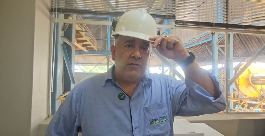 Alexandre Medeiros, gerente Industrial da Usina Utinga, nos recebeu e apresentou a planta industrial construída na década de 1970. “A história da Utinga tem 131 anos, mas teve três plantas industriais diferentes. Essa é a terceira. Uma planta mais moderna, principalmente do ponto de vista de construção. Quando concebida, foi considerada a mais moderna da América Latina, em termos de automação e instrumentação.”