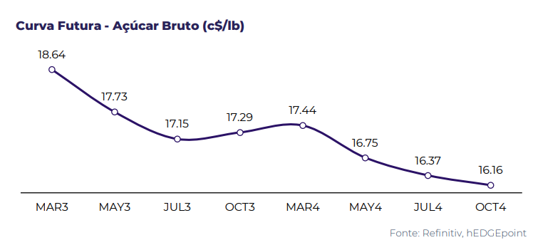 A tendência baixista pode ganhar ainda mais força a medida que nos aproximamos do início da safra 2023/2024 do Brasil em abril de 2023, de acordo com a especialista, especialmente considerando as boas perspectivas atuais. "Para que essa baixa se concretize, os preços do etanol e a política tributária devem permanecer inalterados, ou então o mix pode responder. Esses fatores estão alinhados com a atual estrutura futura do contrato de açúcar bruto - inversa", ela diz.