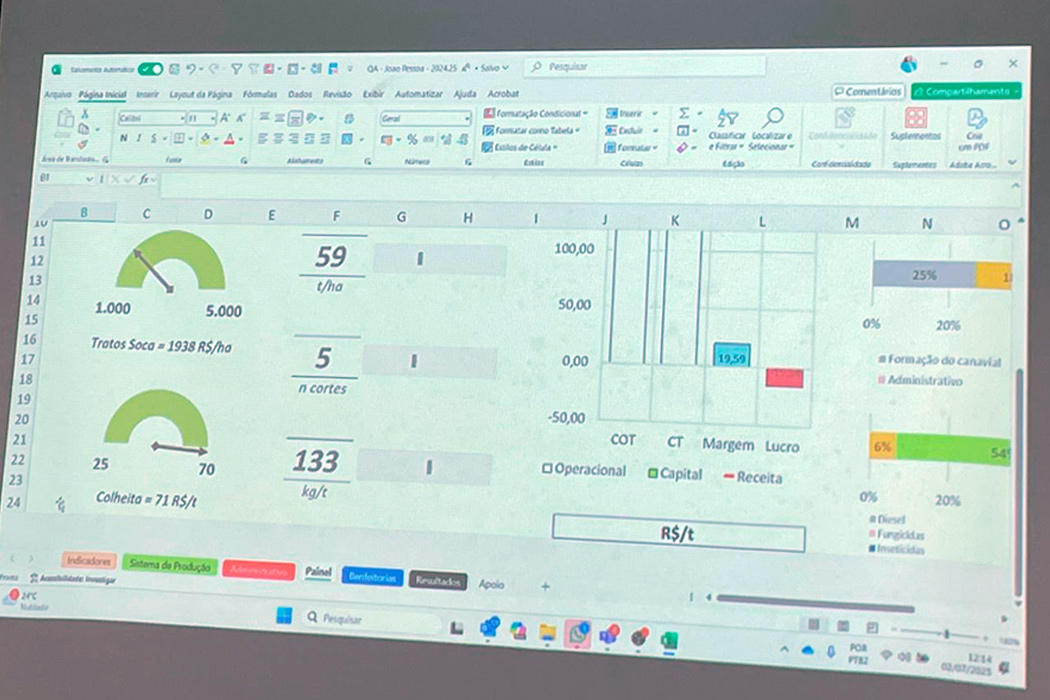 Após o preenchimento de uma planilha de custos de produção local, que levou em consideração todas as despesas e investimentos que teve o produtor canavieiro paraibano para produzir na safra 24/25, a partir de uma propriedade modal de 100 hectares e de cinco cortes, a equipe do Projeto Campo Futuro chegou à conclusão que houve uma margem líquida positiva de R$ 28,00. Os dados que culminaram nesse resultado foram tabulados e apresentados na manhã desta terça-feira (2), na sede da Federação de Agricultura e Pecuária da Paraíba (Faepa). Diretores e integrantes da Associação dos Plantadores de Cana da Paraíba (Asplan) forneceram os dados para o estudo que será apresentado em sua integralidade no dia 14 de agosto próximo, em João Pessoa.