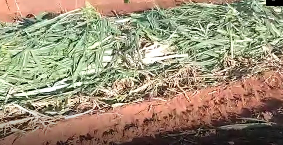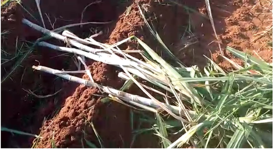 A cana cortada sem as pontas e sem a base é colocada nos sulcos