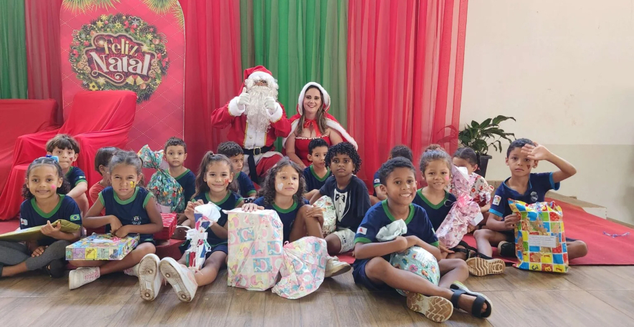 A tradição de espalhar amor continuou no distrito de Patrimônio dos Poncianos, também em Conceição das Alagoas, onde 54 crianças da Escola Municipal Querobino Gomides viveram um dia de ternura e encantamento com a visita do Papai Noel.