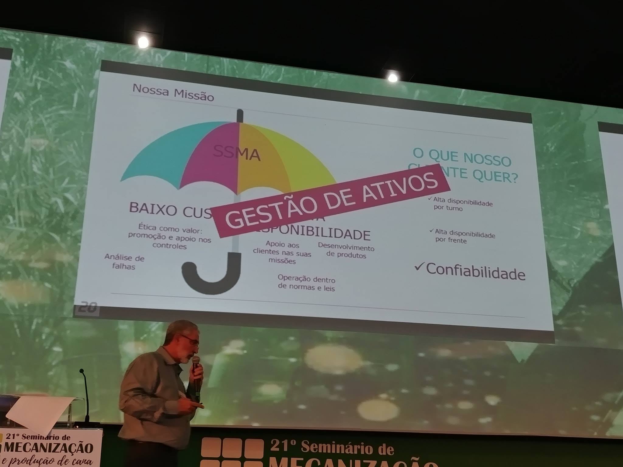 O profissional destacou a gestão de manutenção desenvolvida pela empresa, que trabalha para chegar ao índice zero de manutenção corretiva, valorizando a manutenção preditiva. O foco da Raízen é que a máquina pare apenas quando querem que pare, ou seja, no período de manutenção programada.
