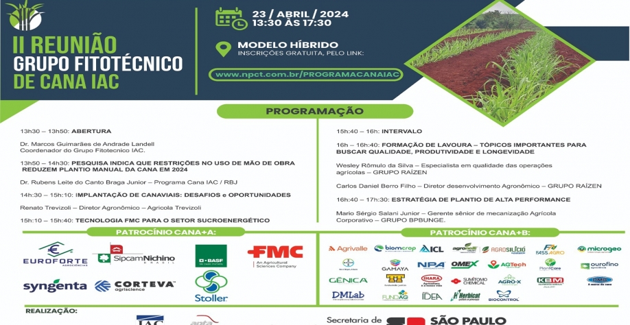 No próximo dia 23/04 serão apresentados os resultados finais da Pesquisa sobre as Novas Técnicas de Plantio em 2024 na reunião do Grupo Fitotécnico (ver convite abaixo).