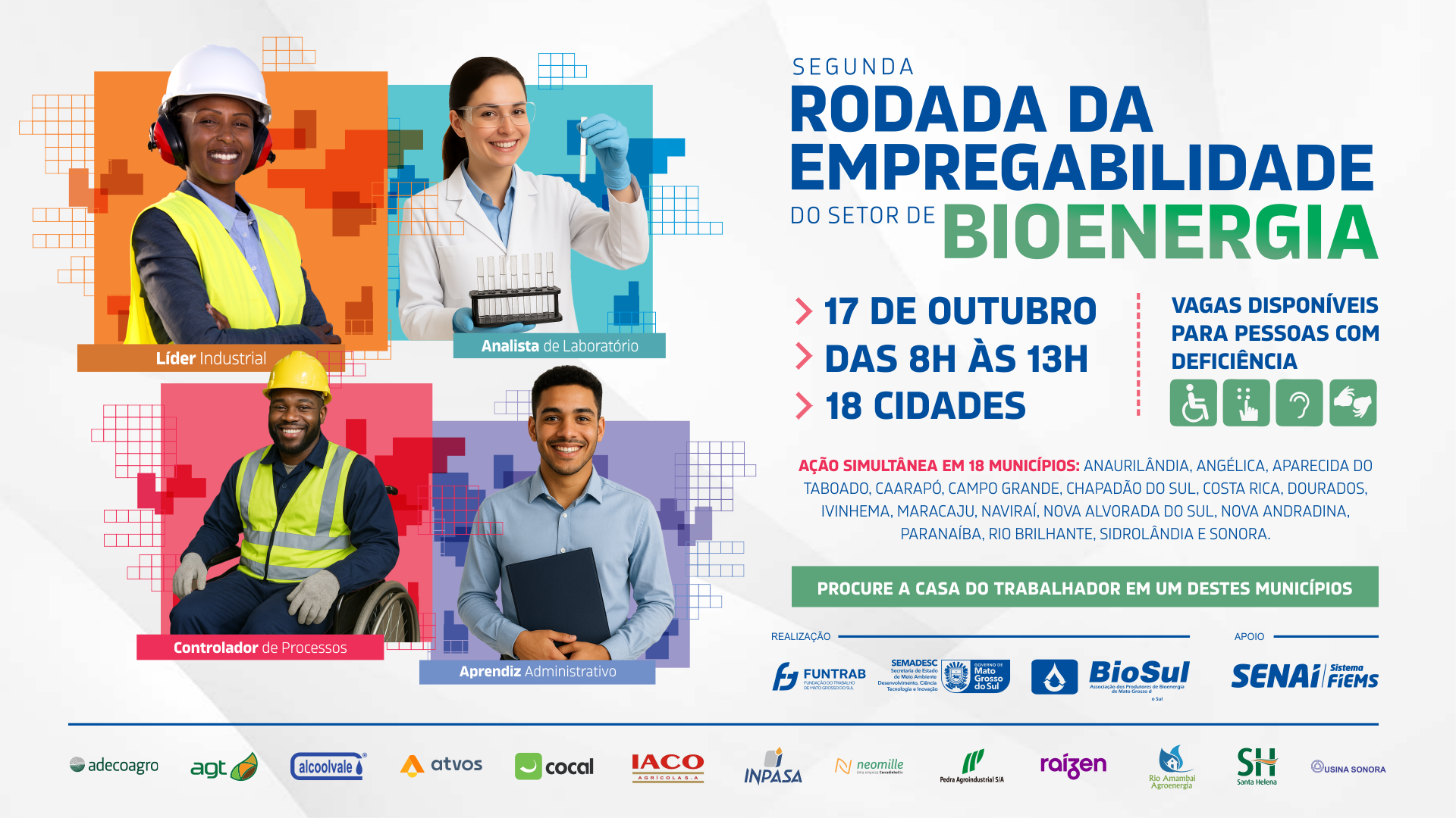 Mais do que um mutirão de contratações, a rodada reflete a importância e o dinamismo do setor de bioenergia para a economia de Mato Grosso do Sul, sendo um segmento tecnológico, em expansão e com diversas portas de entrada para quem busca qualificação e crescimento profissional.