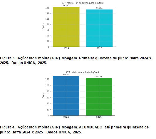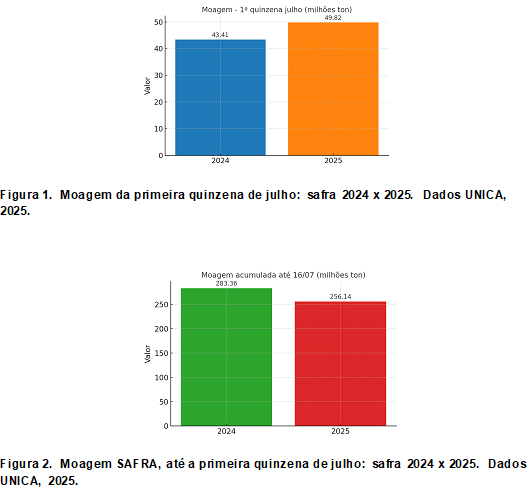 A primeira quinzena de julho de 2025 trouxe alívio parcial ao setor. Foram processadas 49,82 milhões de toneladas de cana, um aumento expressivo de 14,77% em relação à mesma quinzena de 2024. No entanto, o acumulado da safra até 16 de julho ainda está 9,61% abaixo do ciclo anterior, com 256,14 milhões de toneladas frente às 283,36 milhões do ano passado.