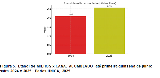 Embora especialistas não considerem o ETANO DE MILHO como ameaça, tendo em vista que vão ser produzidos em regiões onde hoje o etanol de cana chega com baixa competitividade, os dados chamam atenção. Veja abaixo na figura 5.