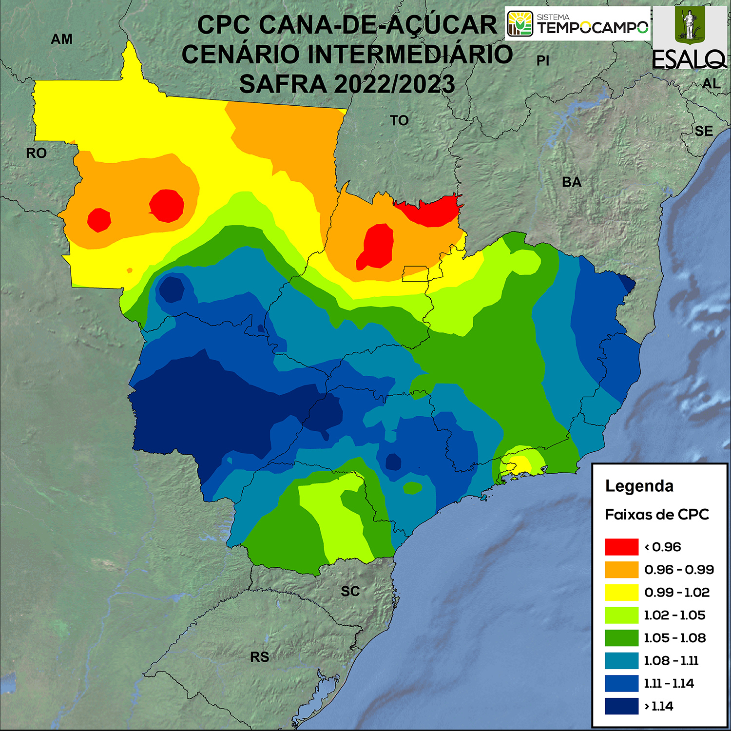 As primeiras estimativas do SISTEMA TEMPOCAMPO, da Escola Superior de Agricultura Luiz de Queiroz (Esalq /USP), para a safra 22/23 de cana-de-açúcar no Centro-Sul apontam para uma recuperação da produção de cana-de-açúcar no centro sul brasileiro, em relação à safra 21/22, com valores variando entre 530 milhões e 578 milhões de toneladas entre os cenários pessimista e otimista respectivamente. Na safra passada, a produção de cana variou entre 516 milhões e 520 milhões de toneladas reportadas pela Companhia Nacional de Abastecimento (CONAB) e pela União da Indústria da Cana-de-Açúcar (ÚNICA).
