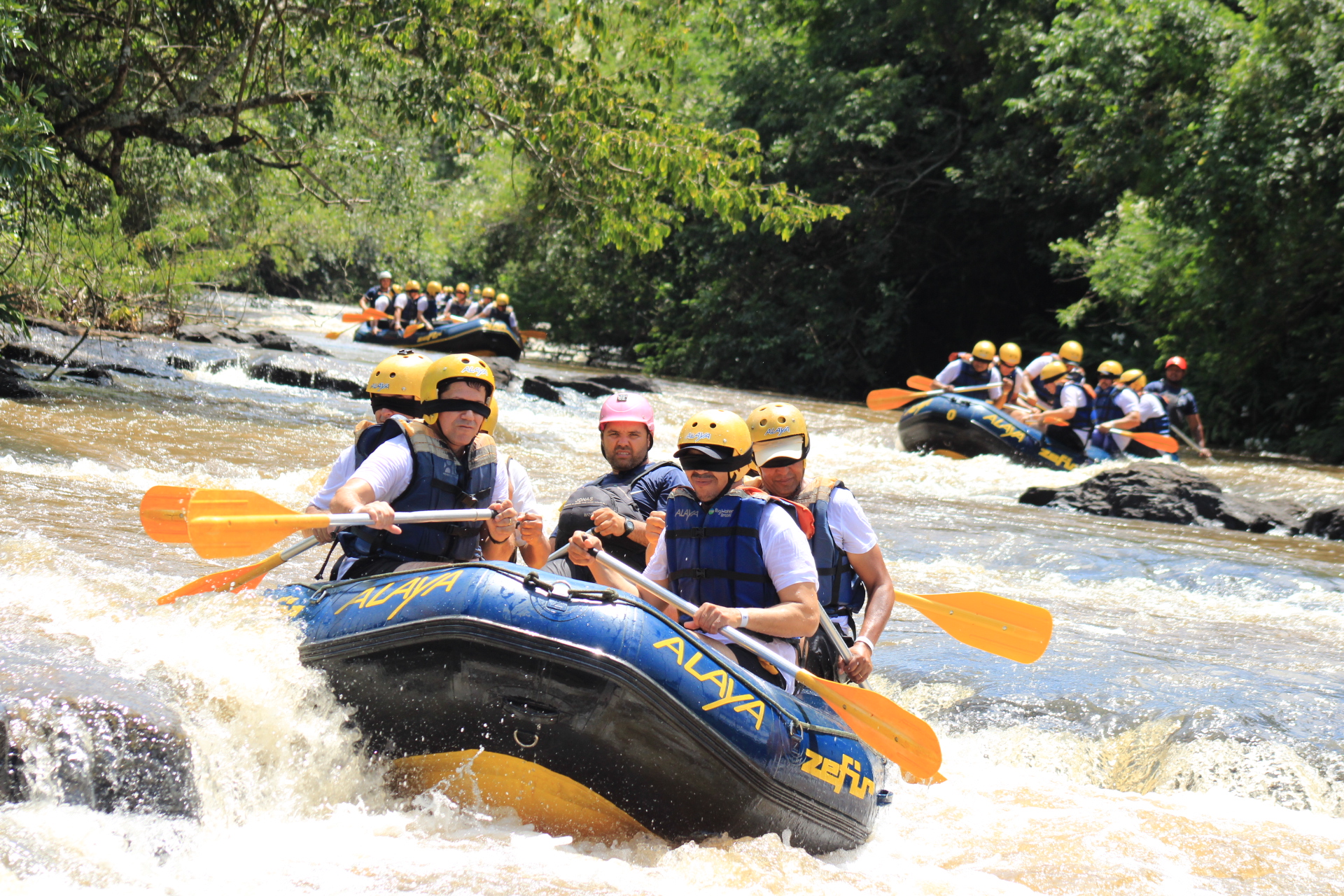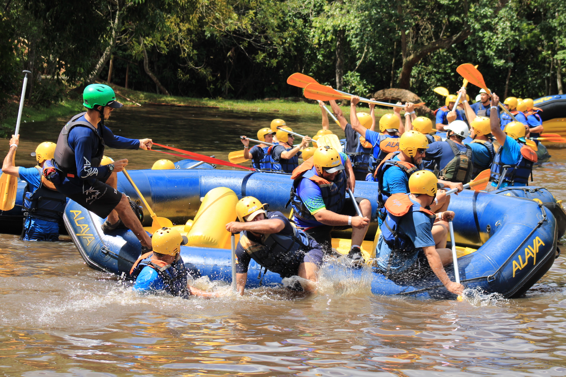 Ao longo de todo o dia, as equipes participaram de duas atividades principais, proporcionando momentos de aprendizado e interação. Uma delas foi o Rafting, uma experiência desafiadora que visou promover a integração, o trabalho em equipe, a liderança, a motivação e a confiança. Durante essa atividade, os participantes desceram uma parte do percurso com os olhos vendados, com o propósito de aprimorar a confiança dos líderes. No decorrer da dinâmica, ocorreu a troca de líderes e a alternância dos integrantes das equipes, proporcionando momentos únicos.