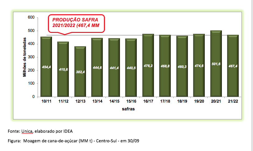 É possivel que ainda tenhamos no campo, até o final de novembro, cerca de 50 milhões de toneladas apenas, configurando uma quebra provável de safra 21/22 em relação a 20/21 de aproximadamente 80 a 85 milhões de toneladas de cana.