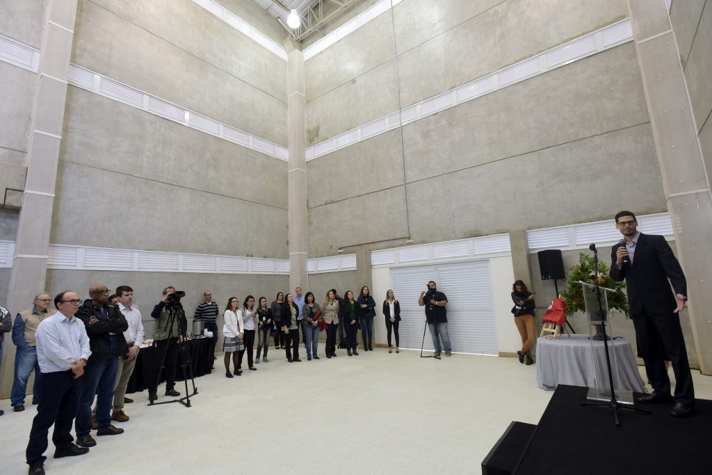 | Foto interna da “planta piloto” do LIB durante a inauguração do novo prédio do Parque Científico e Tecnológico da Unicamp |