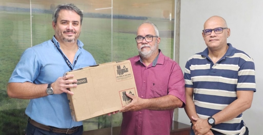 No último dia 27 de junho, a Usina Caeté, Matriz, realizou a doação de um notebook para a Colônia de Pescadores Z-38, localizada em São Miguel dos Campos (AL). A entrega foi feita pelo gerente administrativo da Caeté, José Carlos Lyra Filho, ao presidente da Colônia, Sandro Bonfim, e ao digitador da Instituição, Alexandre Marques.
