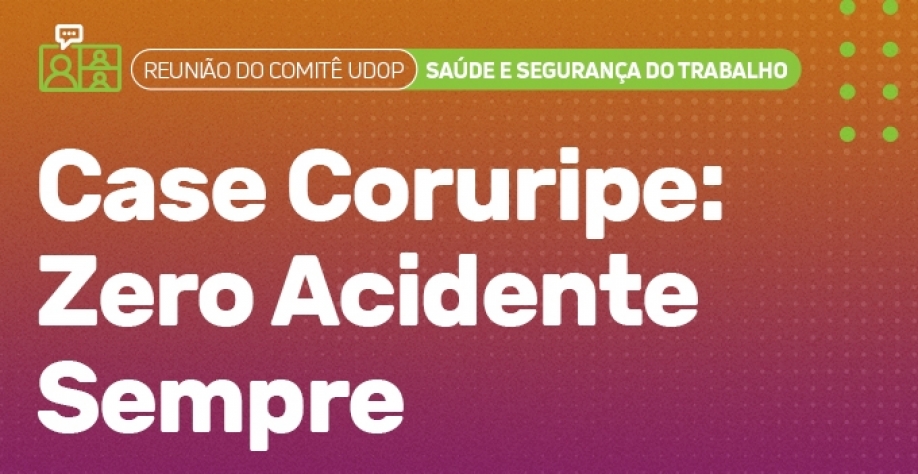 Nesta quinta-feira (20), acontecerá mais uma reunião on-line do Comitê de Saúde e Segurança do Trabalho da UDOP -- União Nacional da Bioenergia. Com início às 11h, o encontro contará com a apresentação do case "Zero Acidente Sempre" da Usina Coruripe, associada da UDOP.