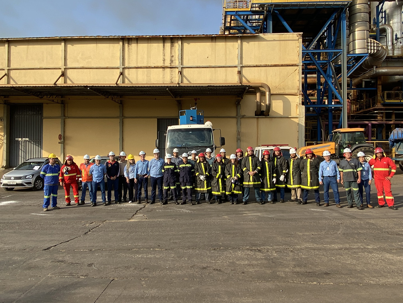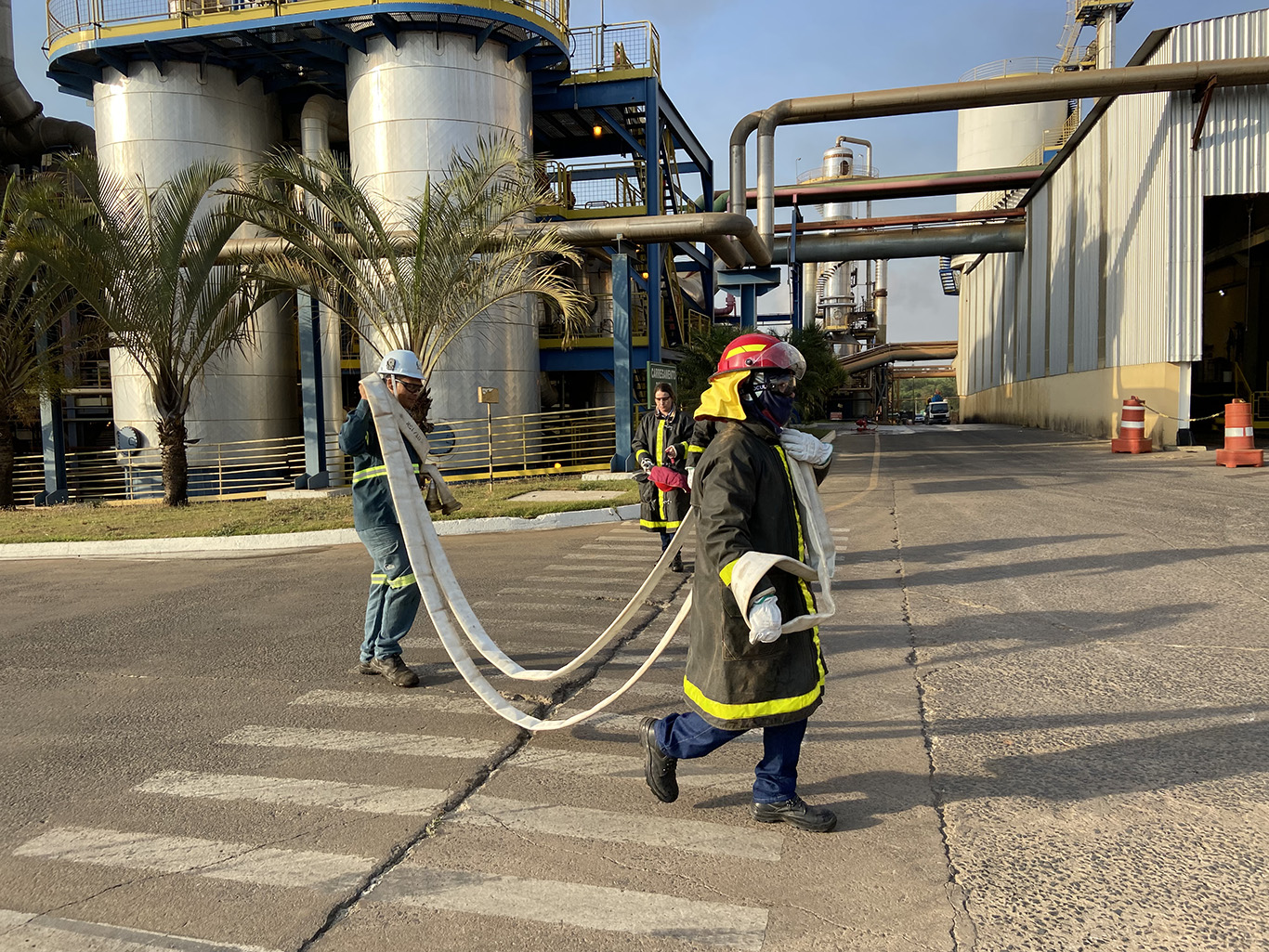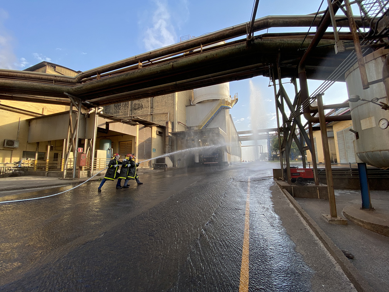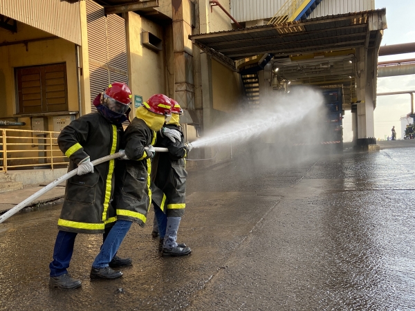 A ação aconteceu no silo de açúcar, onde ocorre o carregamento do produto a granel, e contou com o apoio de outros setores, como a Brigada Florestal e a Segurança Patrimonial.