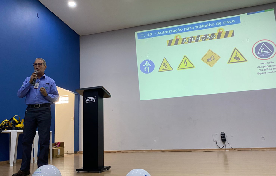 O técnico de segurança José Carlos Dutra, então, abordou o processo de autorização para trabalho de risco, explicando a importância de seguir os protocolos e garantir que todas as condições de segurança sejam atendidas antes de se realizar qualquer atividade considerada de risco.