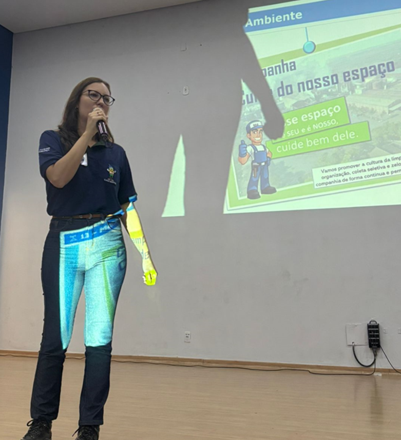 Dando continuidade ao evento, a coordenadora de Sustentabilidade Marcela Zalnierukynas e a analista de Sustentabilidade Saville Souza abordaram a importância da limpeza e organização no ambiente de trabalho. Elas explicaram como essas práticas são fundamentais não apenas para a preservação de um espaço saudável, mas também para a prevenção de acidentes.
