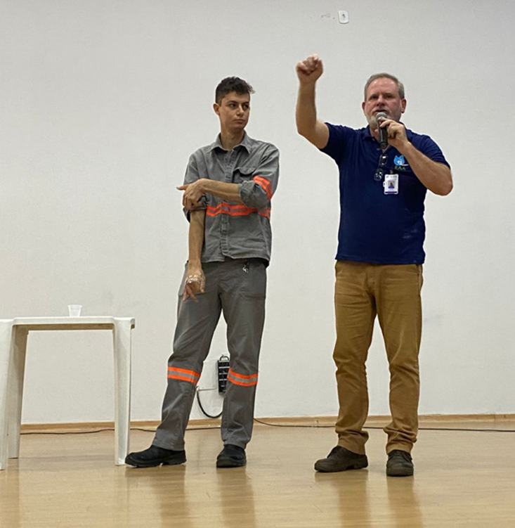 O técnico de segurança Vagner de Araújo Bruno abordou sobre a percepção de risco, convidando os colaboradores a refletirem sobre as situações cotidianas em que podem estar expostos a riscos, muitas vezes de forma inconsciente. O técnico Breno Henrique Zanelatto Gomes, por sua vez, fez uma apresentação sobre a importância do uso correto dos EPIs, esclarecendo como esses itens são fundamentais para a segurança de todos.
