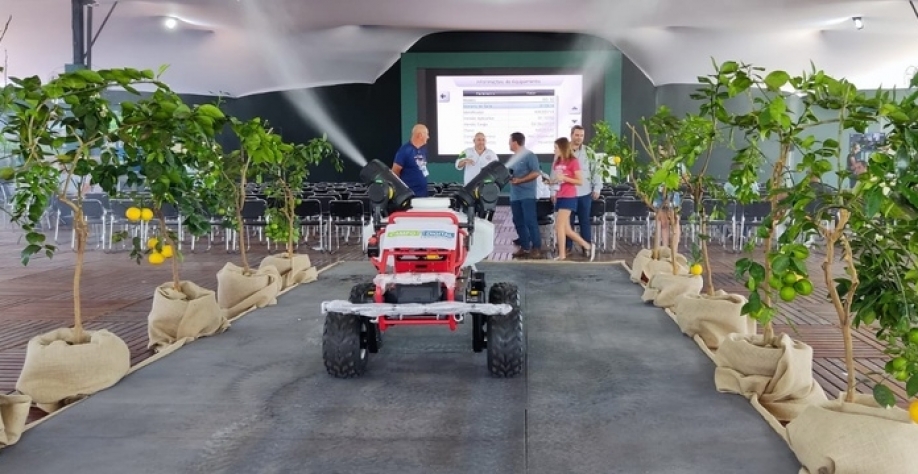Uma das novidades é o veículo autônomo R150, capaz de pulverizar a lavora sozinho sem a necessidade de operadores dentro da cabine. O superintendente de Tecnologia da Coopercitrus, Marcelo Bassi, explica que a nova tecnologia tem bateria para duas horas e capacidade de pulverizar 100 litros de calda.