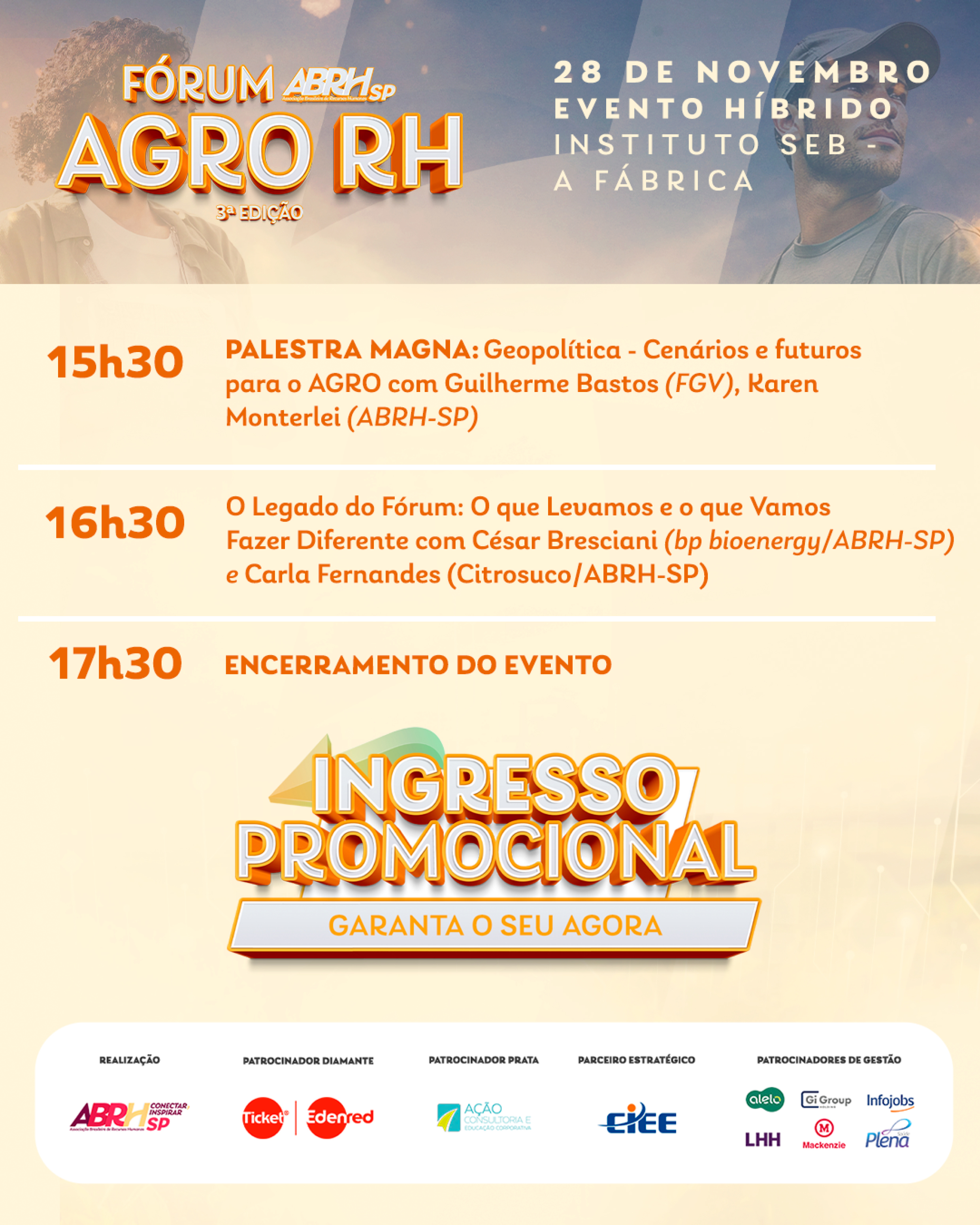 Saiba mais em: https://bit.ly/3-forum-agro-de-rh