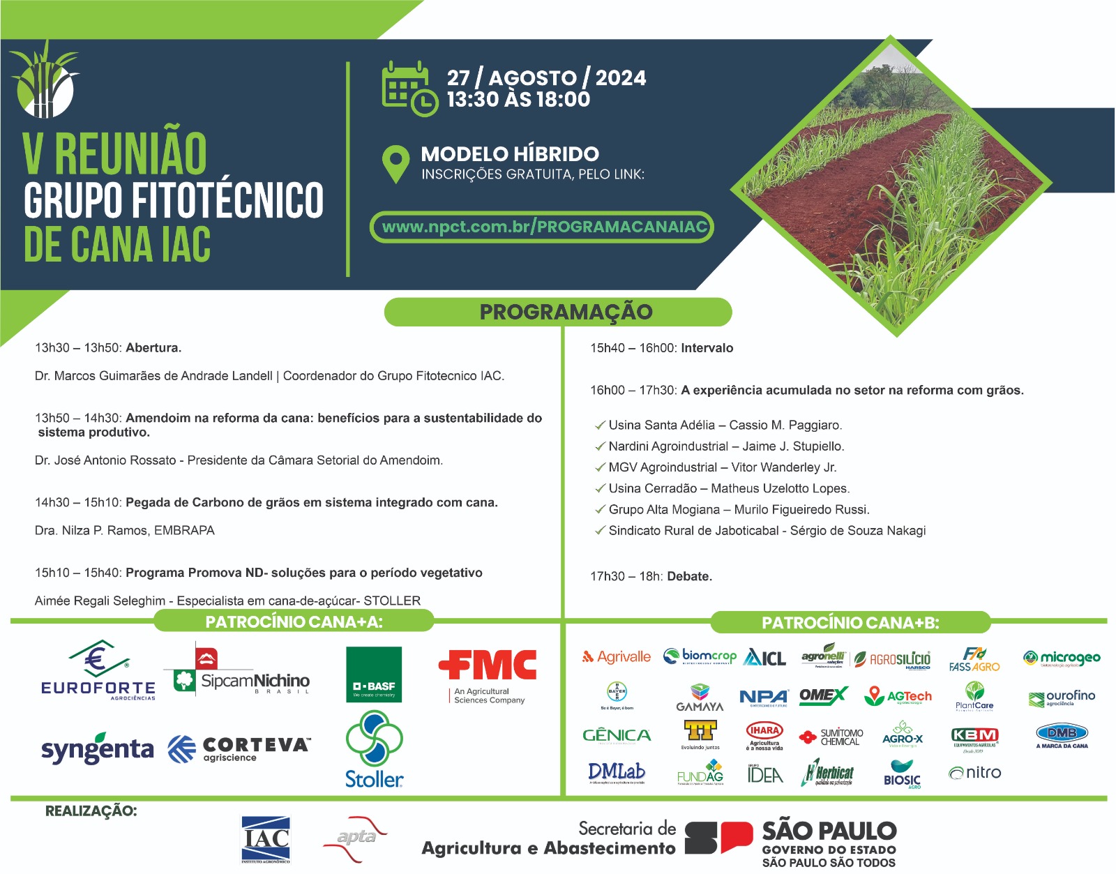 O evento será no Auditório principal do Centro de Cana IAC em Ribeirão Preto-SP, a partir das 13h30