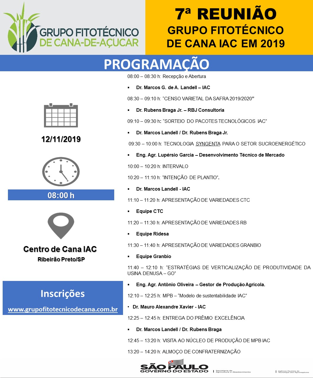 A reunião acontecerá no dia 12/11 no Centro de Cana do IAC, em Ribeirão Preto, SP