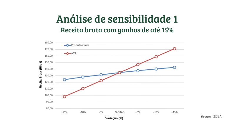 O gráfico acima mostra os principais custos com a sua plantação de cana e para te ajudar a entender onde é possível conseguir os maiores retornos, fizemos uma análise de sensibilidade para você.