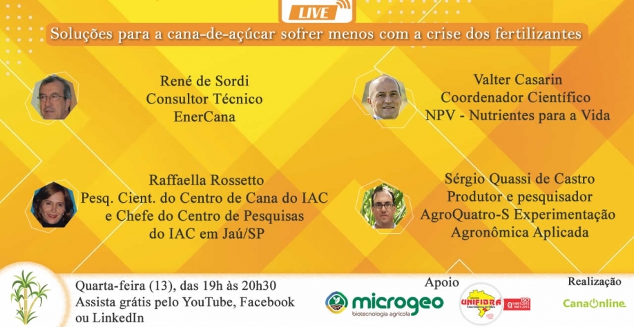 Acompanhe grátis a live: “Soluções para a cana-de-açúcar sofrer menos com a crise dos fertilizantes “