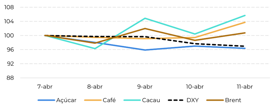 As tarifas de importação levaram a um mercado cauteloso, com temores de recessão e interrupções na cadeia de suprimentos impactando os principais setores, inclusive o de energia. O açúcar enfrentou perdas significativas, com a adição de fundamentos de baixa e a desvalorização do real