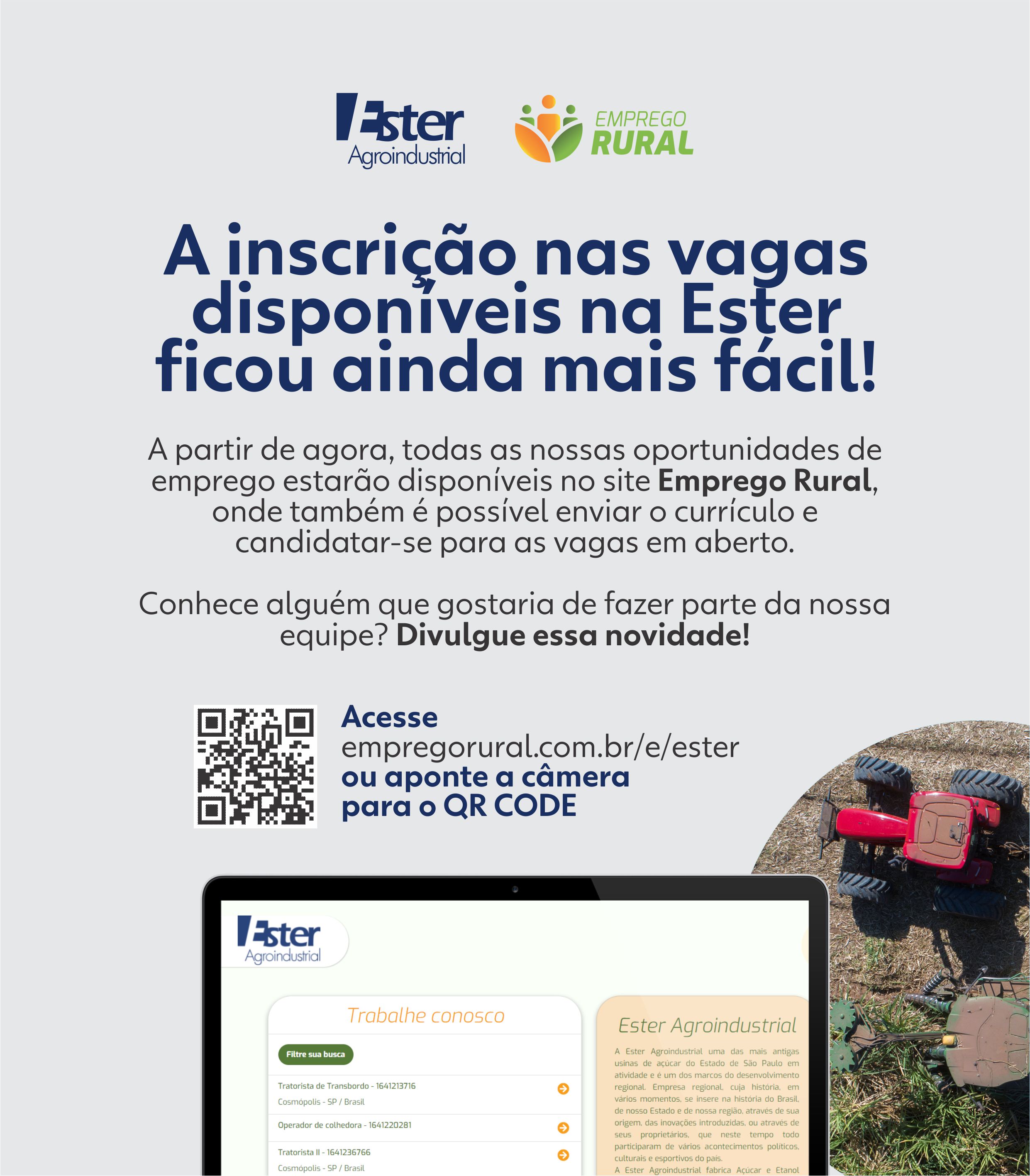 Agora ficou mais fácil se inscrever para as vagas da Ester Agroindustrial