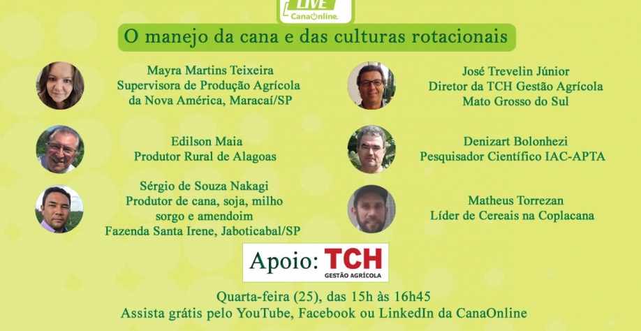 Máyra será debatedora na live: “Manejo da cana e das culturas rotacionais”, que a CanaOnline realiza em 25/08 a partir das 15h00 e contará com a participação de: