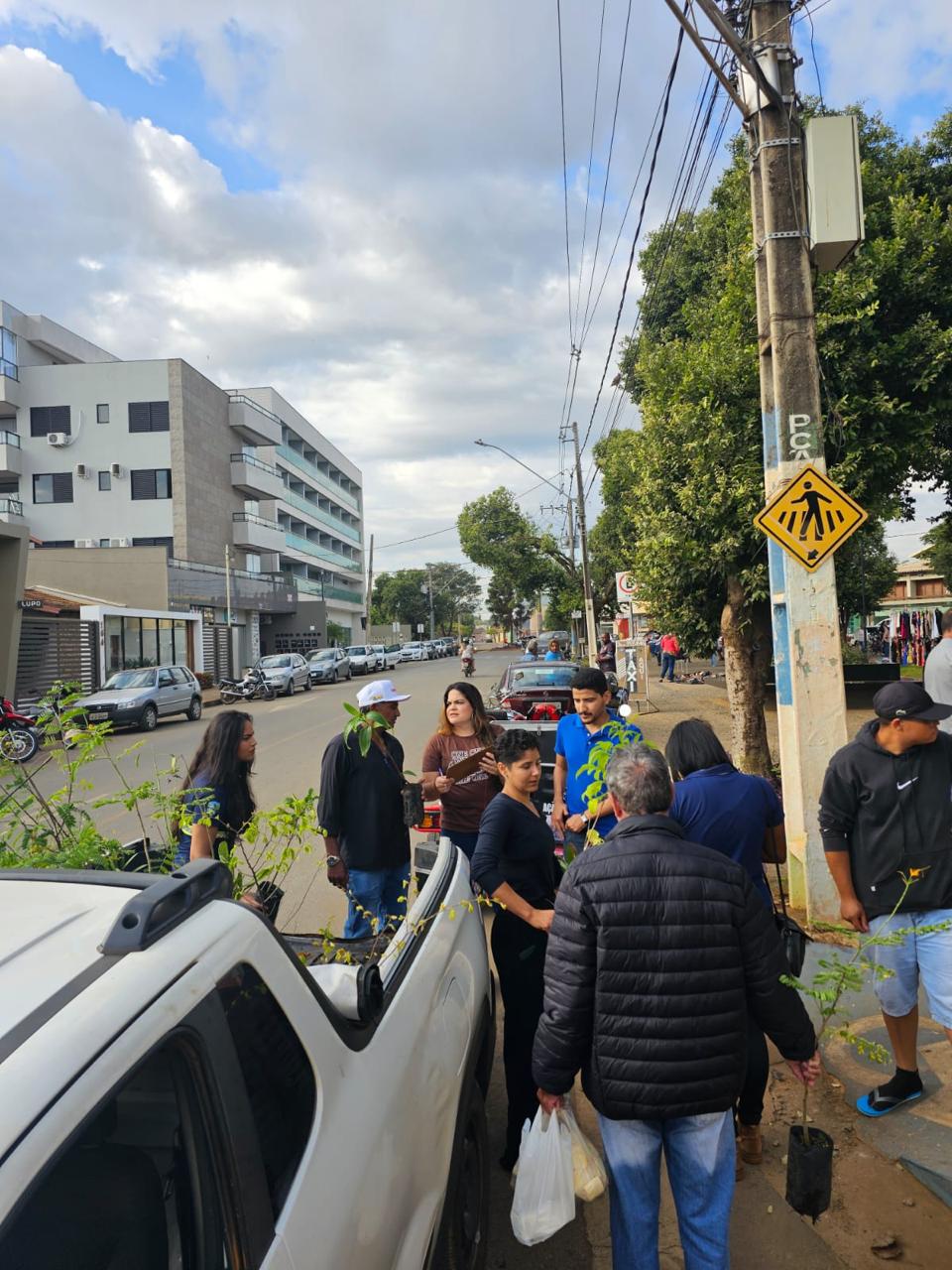 A atividade contou com a presença da diretora de Meio Ambiente, Larissa dos Reis Maciel, do Secretário de Agronegócio, Comércio, Indústria e Meio Ambiente, Alexandre Gonzaga de Paula, e do prefeito Kenedy Wállafy Souza de Oliveira, que estiveram à frente da organização e participaram ativamente da ação, colaborando na distribuição das mudas e mantendo um diálogo próximo com a população presente na praça.