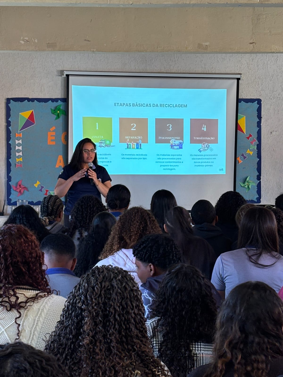 Durante a palestra, a analista de Meio Ambiente, Darah B. Costa, apresentou aos estudantes os diferentes tipos de materiais recicláveis, explicou como funciona o processo de coleta seletiva e destacou os benefícios ambientais, sociais e econômicos da reciclagem, especialmente para a cidade de Pompéu.