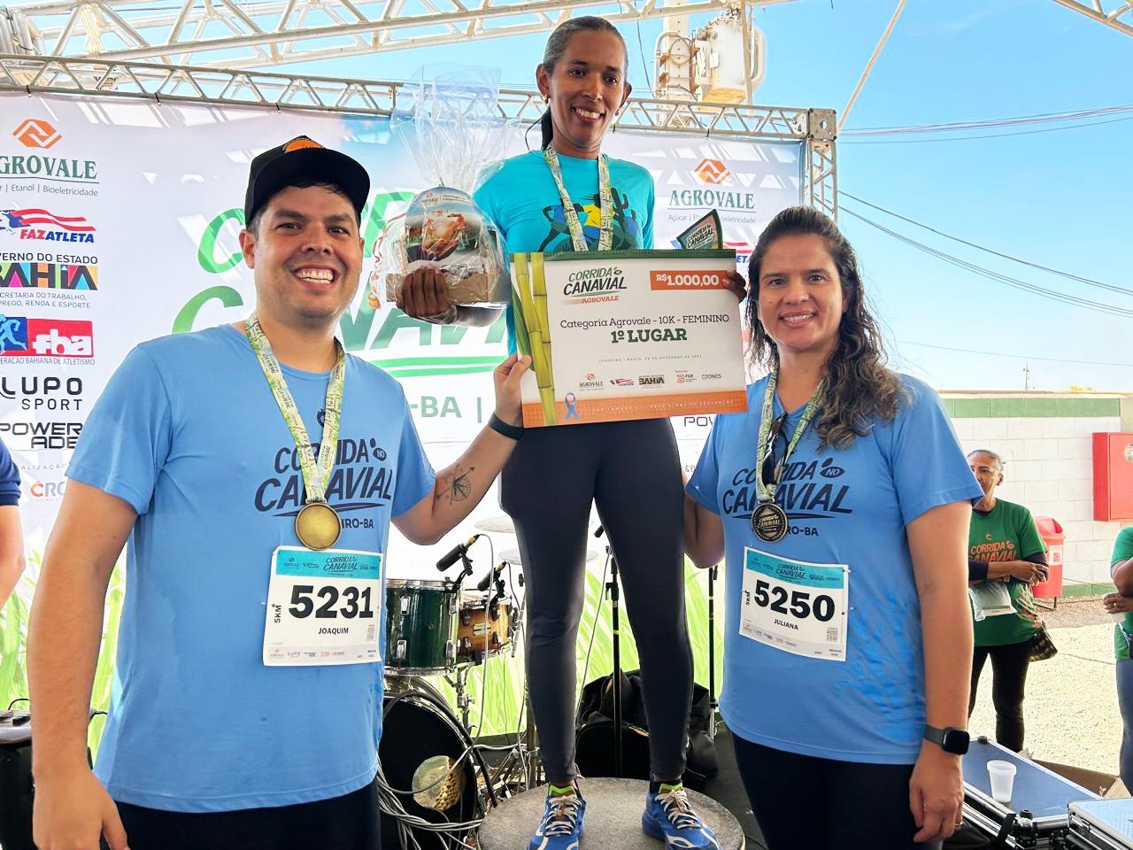 A superintendente Administrativo Financeira da Agrovale, Juliana Alves, agradeceu e parabenizou os atletas pelo verdadeiro exemplo esportivo, de saúde e responsabilidade social. "Tivemos hoje um verdadeiro momento de integração, saúde e solidariedade em alusão ao Novembro Azul, com o tema 'Cuidar também é correr atrás da prevenção! " A resposta foi extremamente positiva, com as inscrições esgotadas em menos de uma hora", concluiu. No encerramento, após shows musicais, os primeiros colocados nas três provas subiram ao pódio e receberam troféus e medalhas. A Agrovale vai reverter toda a renda com as inscrições para entidades filantrópicas de Juazeiro e Petrolina. O domingo de provas esportivas contou com a parceria do Governo do Estado, por meio da Sudesb (Superintendência dos Desportos do Estado da Bahia), através do Programa Estadual de Incentivo ao Esporte Amador do Estado da Bahia (Faz Atleta).
