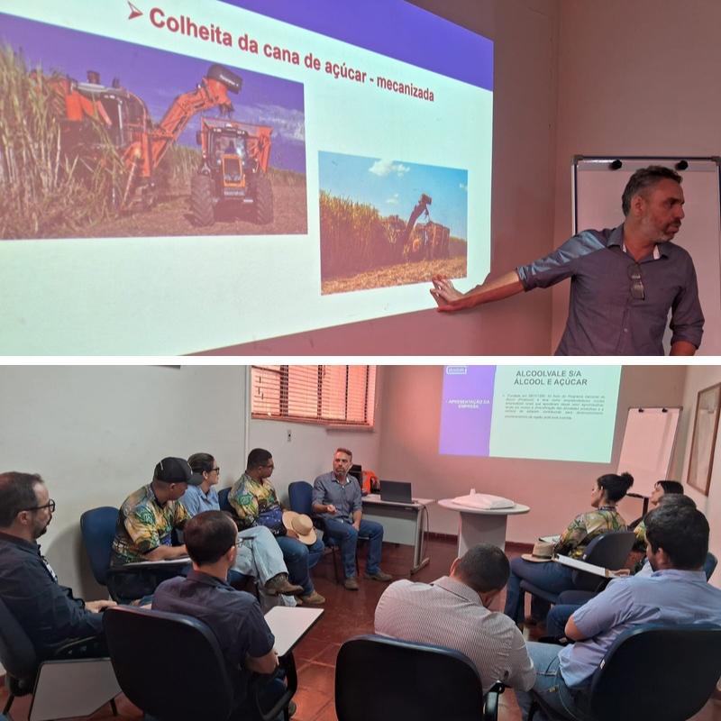 A programação teve início com uma palestra conduzida pelo supervisor de CTT da empresa, que detalhou as etapas e tecnologias envolvidas em sua área de atuação. Também participaram do encontro o supervisor e o analista de Planejamento Agrícola, além da equipe de Recursos Humanos da Alcoolvale.