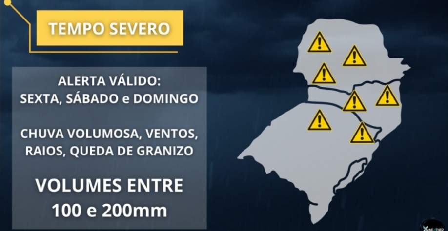 No Paraná, Santa Catarina e norte do Rio Grande do Sul, os acumulados de chuva podem ultrapassar 200 mm em três dias. Os temporais trazem rajadas de vento com mais de 70 km/h e queda de granizo em todas as áreas.