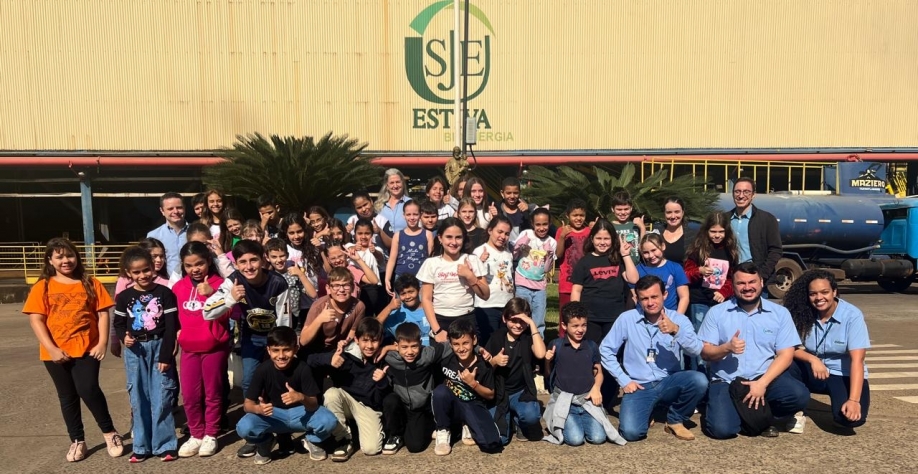 Na Usina Estiva, os alunos foram recebidos pelo encarregado de Planejamento e Controle Industrial, Yuri Pavini, que os levou para um tour passando pelo parque de tanques, armazém de açúcar, moenda, fábrica, destilaria e caldeira. O passeio foi feito dentro do ônibus, de modo seguro e confortável. “Foi muito bacana receber as crianças do Projeto Plugando aqui na Usina. Parabéns à empresa pela iniciativa de abrir as portas e mostrar, de forma leve e educativa, como funciona a nossa indústria”. Yuri parabenizou os responsáveis pelo projeto, além da equipe da Usina que acompanhou os visitantes, e lembrou que ele já esteve no mesmo lugar dos alunos. “Quando eu era criança, também tive a oportunidade de fazer essa visita com a escola onde estudava. Hoje, poder estar do outro lado, recebendo essa nova geração, foi realmente marcante”, afirmou feliz.