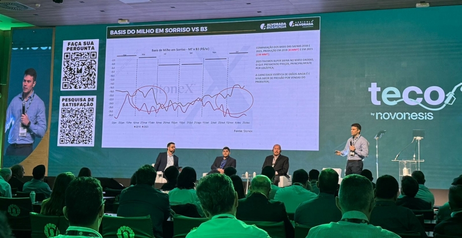 A Alvorada Bioenergia se destacou na 11ª edição do TECO Latin America, realizado em São Paulo nos dias 30 de setembro e 1º de outubro. O evento, que é um dos principais pontos de encontro da indústria de etanol de milho e grãos na América Latina, contou com a participação de mais de 300 profissionais do setor. Durante o evento, o diretor comercial da Alvorada Bioenergia, Marcelo Pires, apresentou a palestra "Estratégia de Originação para Biorefinarias", discutindo o papel do milho na consolidação da bioenergia no Brasil e as perspectivas de crescimento para o setor.