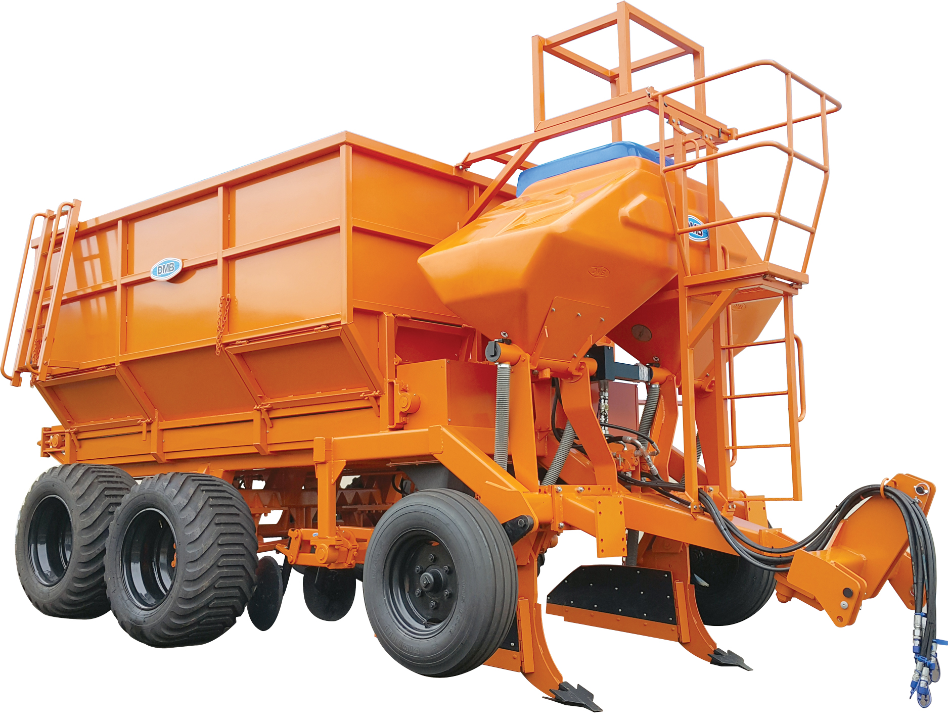 Um dos destaques da linha de equipamentos da DMB, voltados à utilização desse subproduto industrial, é a “Carreta Sulcadora e Distribuidora de Torta de Filtro – Plantadora de Torta”. Este equipamento foi desenvolvido para realizar a sulcação de duas linhas de cana com simultânea distribuição de torta de filtro e adubo no sulco de plantio.