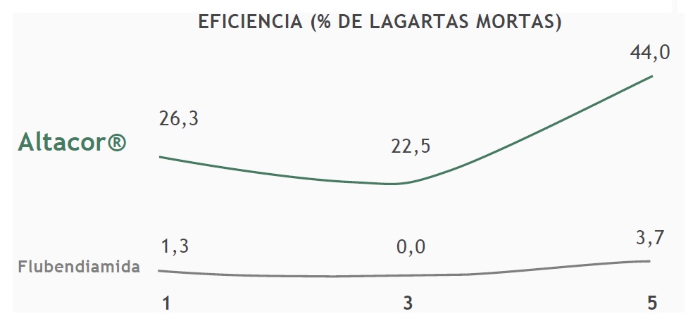 “Por contar com essa característica, o Altacor garantirá um longo residual e, consequentemente, irá controlar a praga por um maior período de tempo, ao passo em que as outras diamidas ou fisiológicos presentes no mercado irão perdendo gradativamente o nível de controle, por não haver mobilidade desses produtos na planta.”
