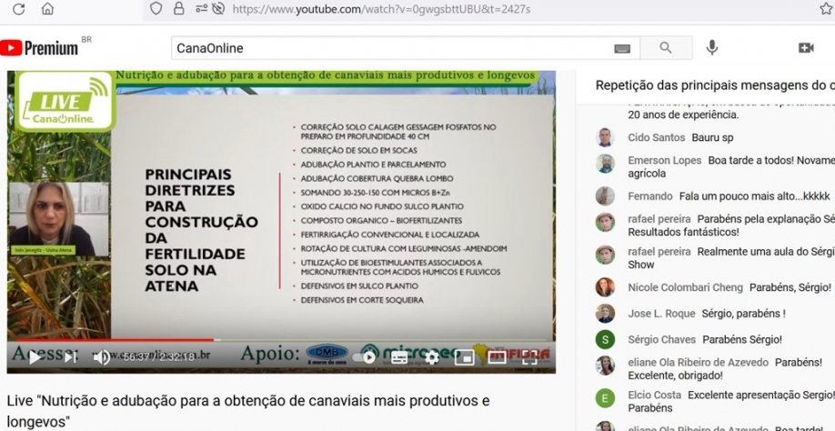 Durante a live “Nutrição e adubação para a obtenção de canaviais mais produtivos e longevos’, Inês Janegtiz, gerente Agrícola da Usina Atena, apresentou o trabalho que realizam para cultivar cana em solos restritivos