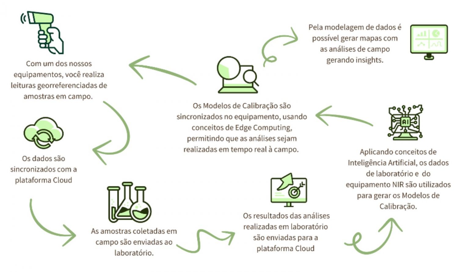 A Tecnologia de Infravermelho Próximo (NIR) já é reconhecida por sua capacidade de realizar análises rápidas e não destrutivas em diversos segmentos, como solos, fertilizantes e grãos. Com o AG-NIR, a Bevap poderá realizar análises georreferenciadas em campo, sincronizando os resultados com o Grandeo Cloud®. Isso permitirá um aumento significativo no volume de amostras analisadas nas áreas de interesse, com resultados obtidos em tempo real, tornando o processo decisório mais assertivo e eficiente.