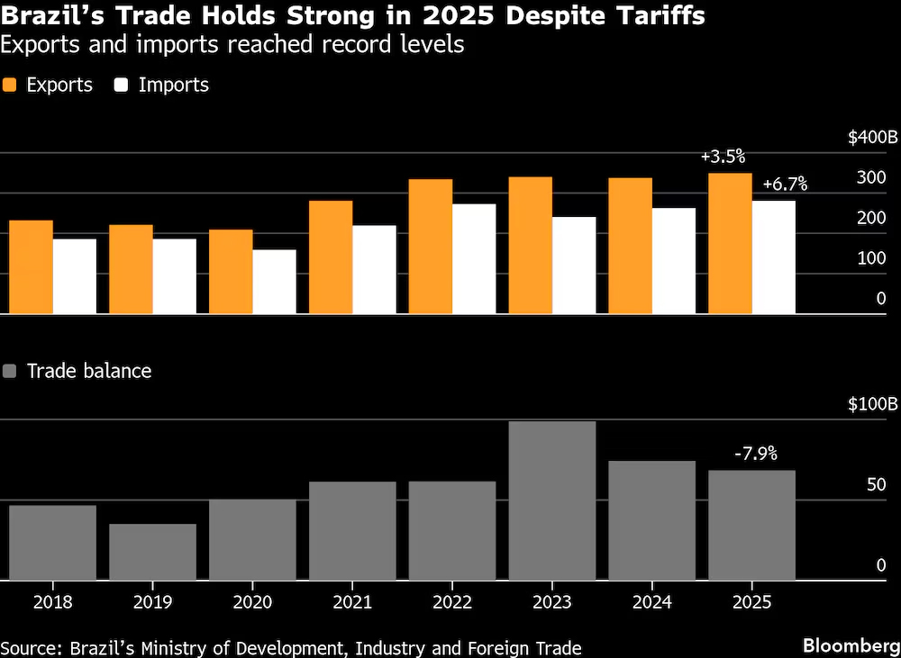 Brasil supera impacto de tarifas de Trump e bate recorde de exportações em 2025