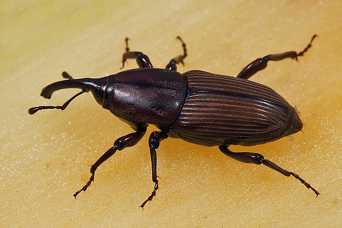 Sphenophorus levis na fase adulta, conhecido como o bicudo da cana