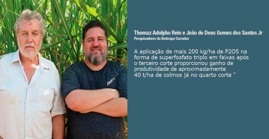 A aplicação de mais 200 kg/ha de P2O5 na forma de superfosfato triplo em faixas após o terceiro corte proporcionou ganho de produtividade de aproximadamente 40 t/ha de colmos já no quarto corte, com aumentos observados em todos os componentes do rendimento (número de colmos por metro, comprimento e espessura dos colmos).