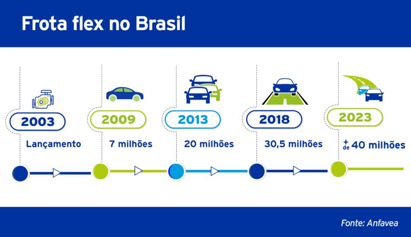 Em poucos anos, todas as montadoras instaladas no país passaram a disponibilizar modelos bicombustíveis, capazes de rodar tanto com etanol quanto com gasolina, em qualquer proporção de mistura. Em 2013, dez anos depois de lançado o motor, 20 milhões de carros flex já circulavam pelas ruas brasileiras. Hoje, mais de 40 milhões de veículos oferecem aos motoristas a oportunidade de escolher entre um combustível fóssil e poluente e um combustível sustentável para encher o tanque.